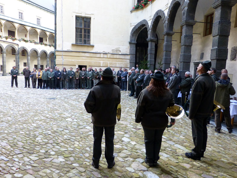 Před vlastní výstavou vystoupil před shromážděnými účastníky na nádvoří zámku Soubor loveckých trubačů LČR, LS Jeseník ve složení Renáta Jeřábková, Anna Vencálková, Radek Procházka a Bc. Zdeněk Pavlíček, předseda o. s. Jesenický kamzík, který všechny na zámku přivítal, představil autory výstavy a popřál všem příjemný pobyt a pěkné zážitky.