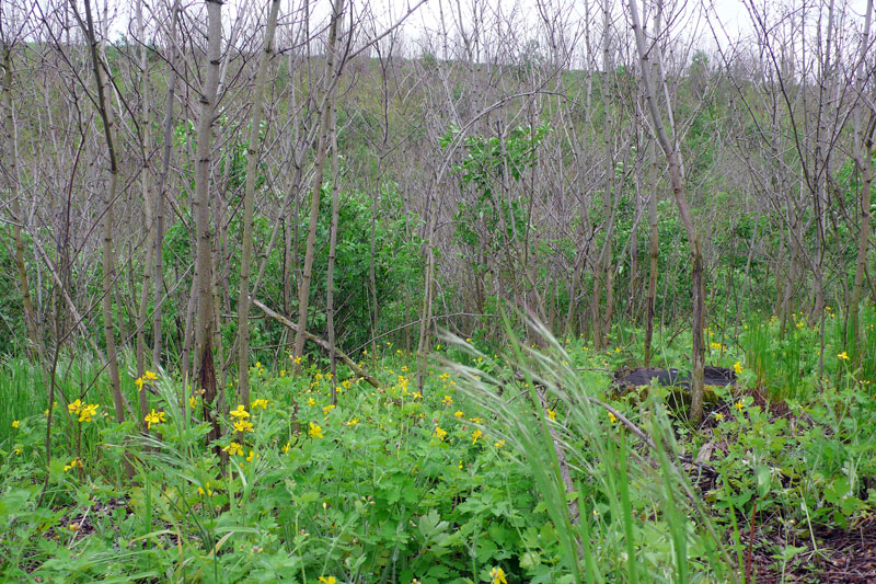 Zmlazení akátu s podrostem bezu a vlaštovičníku. |