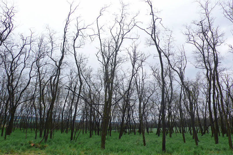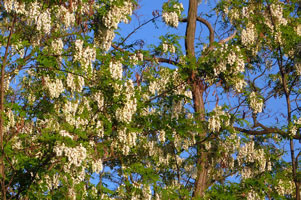 Akátové lesíky v zemědělské krajině často tvoří jedinou zeleň. |
