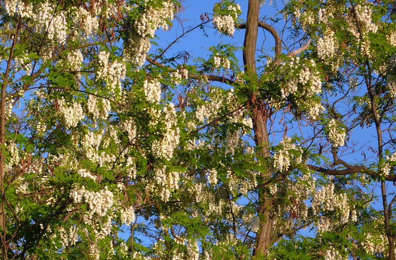 Akátové lesíky v zemědělské krajině často tvoří jedinou zeleň. |