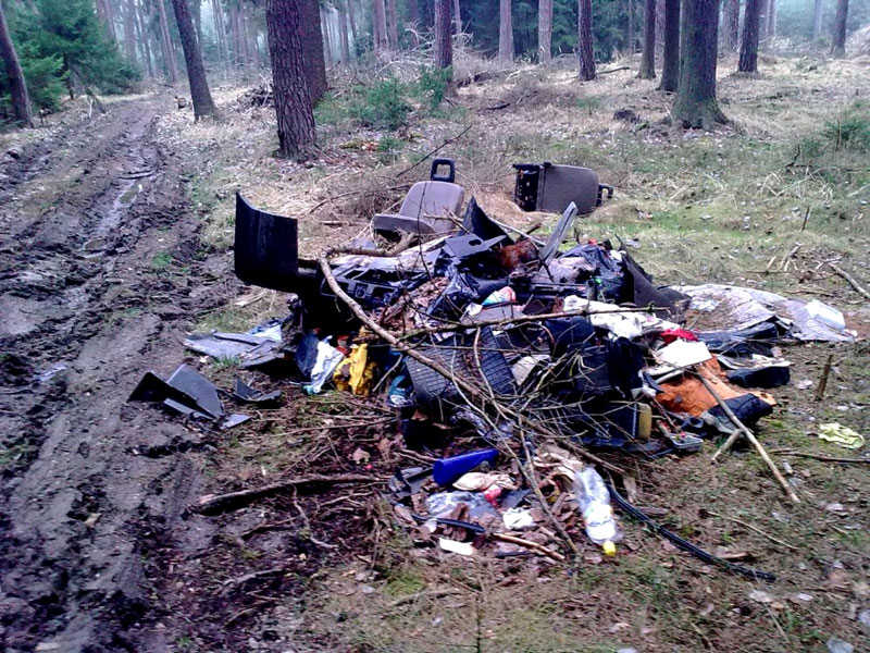 V lese je možné najít černé skládky všeho druhu. Od pneumatik, komunálního odpadu, starých televizorů, stavebního odpadu až po všechno ostatní, co doma překáží. Je s podivem, proč tyto odpadky končí právě v lese, když dotyčný cestou mine několik kontejnerů určených k bezplatnému ukládání odpadu, když mine sběrné dvory a váží dost dlouhou cestu do lesa.