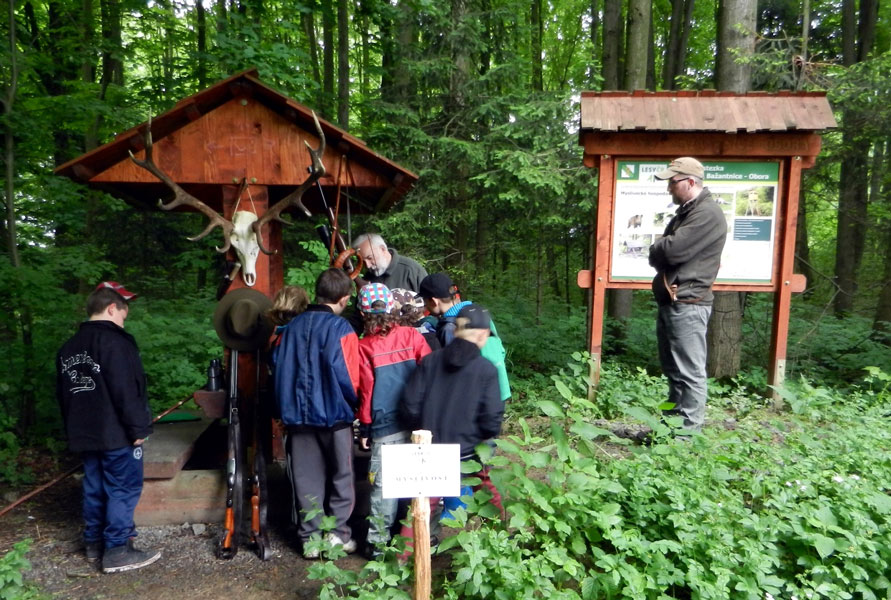 V rámci zahájení zahráli myslivecká fanfáry dva chlapci, jen o málo starší než přítomné děti, kterých dorazilo 125. Ve skupinkách po 7-11 se vydávaly na soutěžní trať dlouhou 2,5 km, na které bylo připraveno 8 zajímavých stanovišť s lesnickou či mysliveckou tématikou. Ty, které čekaly na start své skupiny, mohly závodit a vyzkoušet si třeba zatloukání hřebíků, střílet ze vzduchovky na myslivecké terče, lézt po lanové dráze, obdivovat práci dřevosochaře s motorovou pilou, střílet z luku nebo se účastnit dalších pohybových a logických her.