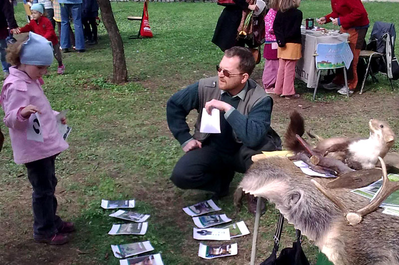 Na stanovišti Lesů České republiky, s. p., si všichni zájemci mohli prohlédnout obrázky lesní zvěře a k nim přiřadit jejich stopy, mnozí poprvé drželi v ruce parůžek srnce, parohy jelena a daňka, škáru kance nebo vycpanou kunu lesní.