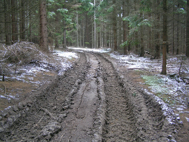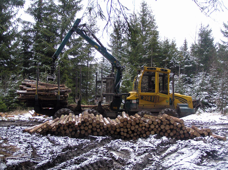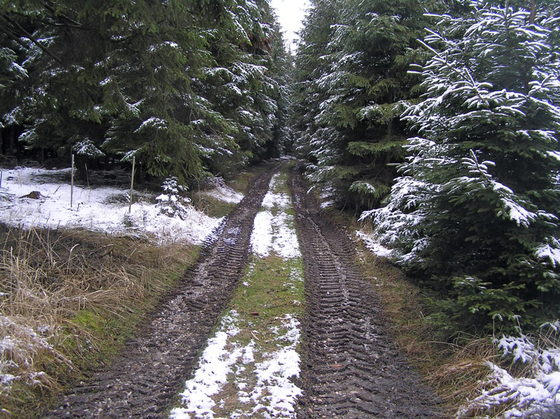 Zde se již dotýkám prvního problému, čímž je výběr vhodných porostů pro tuto technologii. Vhodný výběr by měl zaručit zdárný a bezeškodný průběh daných činností. Porosty mohou být i ve svahu, ale v rozumných terénních podmínkách. Některé porosty na revíru, které jsou zcela na rovině, jsou podmáčené nebo mají velice členitý mikroreliéf. Jedná se o různé muldy a příkopy (historicky zde probíhal geologický průzkum pro těžbu uranu), které práci harvestorům a následně vyvážečce znepříjemňují, mnohdy i zcela znemožní. Takovéto porosty je vhodnější provádět ručně či technologie zkombinovat. Všeobecně je ale bedřichovská část mého revíru pro práci harvestorovou technologií vhodná a často ji zde využívám.