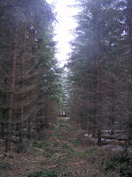 Škody mimo porost: Na zpevněných cestách jsou škody minimální /obr.12/. Na cestách nezpevněných (díky průběhu počasí počátkem roku) došlo bohužel k vymačkání kolejí /obr.13/. Tyto škody byly (budou) uplatněny v rámci povýrobních úprav pracoviště dle smlouvy. V rámci diskusí s kolegy byl vyřčen názor, že velkým množstvím linek v mladém porostu dochází k jeho zbytečnému prořeďování. Na tento problém jsem se zaměřil. I když je dosah ruky harvestoru Rottne H8 – 7 m, operátoři tvoří běžně po domluvě linky po 18 – 20 m. Natáčejí se – „napichují se“- do pracovního pole mezi linkami a prodlužují tak dosah stroje o 2 – 3 m. Z tohoto plyne, že společnou snahou je vytvářet menší počet linek. Vše je pouze o lidech a vzájemné domluvě. Dále jsem srovnal rozestup korun jedinců na lince bezprostředně po zásahu /obr.14/ a korun stromů na lince cca 5 let po zásahu /obr.15/. Ve většině případů jsou koruny jedinců po 5 – ti letech na linkách zcela zapojené a pokud stojím mimo linku, stěží poznám, že tu projel harvestor. V hustých smrkových porostech dochází vložením linek pro harvestor k rozčlenění a následnému zpřístupnění. Dále se domnívám, že linky po harvestoru, které jsou orientované kolmo proti bořivým větrům příznivě ovlivňují stabilitu porostu, ale toto je již na další velké téma. V závěru je třeba překontrolovat všechny části porostních skupin, zda je zásah proveden po celé ploše a zda je veškeré dříví vyvezeno. Měření hrání je pro mne vždy příjemnější než častá kontrola a přejímka dříví přímo po těžbě na lokalitě u pařezu. Během dvouměsíční činnosti harvestorového uzlu se na revíru zpravovalo cca 29,00 ha a 1400 m3 dříví průměrné hmotnatosti 0,10 – 0,15 m3.