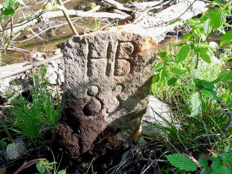 Další fáze pátrání proběhla v terénu. S ohledem na současnou podobu porostů na obou březích hraničního toku, především k listnatým mlazinám z přirozené obnovy na poměrně bohatém stanovišti, bylo nutno vyčkat na předjaří, kdy jsme předpokládali lepší podmínky pro hledání dochovaných hranečníků. A povedlo se, v korytu potoka jsme kamenné hranečníky s čísly shodnými s mapou opravdu nalezli. Některé byly vyvrácené, ale byly tam!