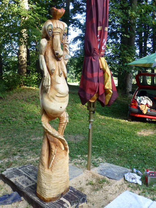 S prací řezbářů byli všichni spokojeni, spokojeni byli i návštěvníci společenského setkání v závěru řezbářského plenéru, při němž hrála k poslechu i tanci živá hudba a byly podávány slovinské speciality a pochoutky z grilu.