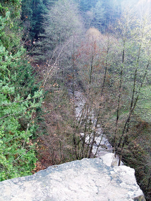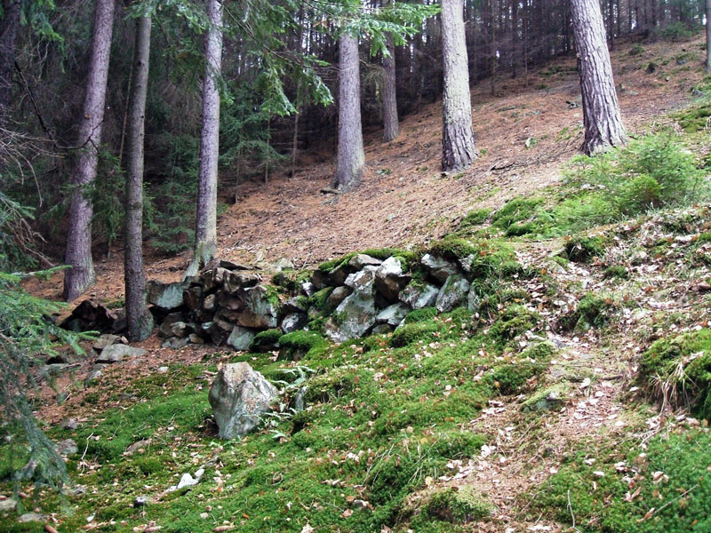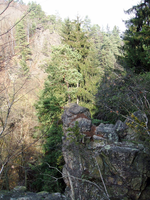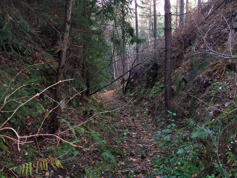 – Zářez ve skále, kde jezdila drezína po úzkokolejce.