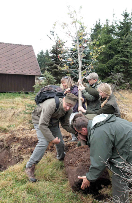 - Při výsadbě vzrostlého jeřábu ptačího na křižovatce lesních cest Předěl každý rád přiložil ruku k dílu.