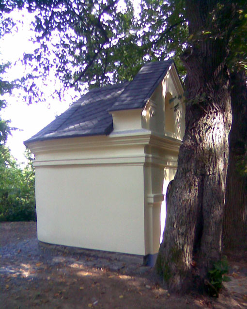 Podnik projekt úpravy kapličky financoval v rámci Programu 2000, kterým celostátně podporuje veřejně prospěšné funkce lesů. Kamenná kaple stojí nad řekou Moravicí, západně od osady Zálužná na katastrálním území Staré Těchanovice. Přesné datum vybudování kaple není známo. První zmínky o její existenci jsou v rakouském vojenském mapování z roku 1764.