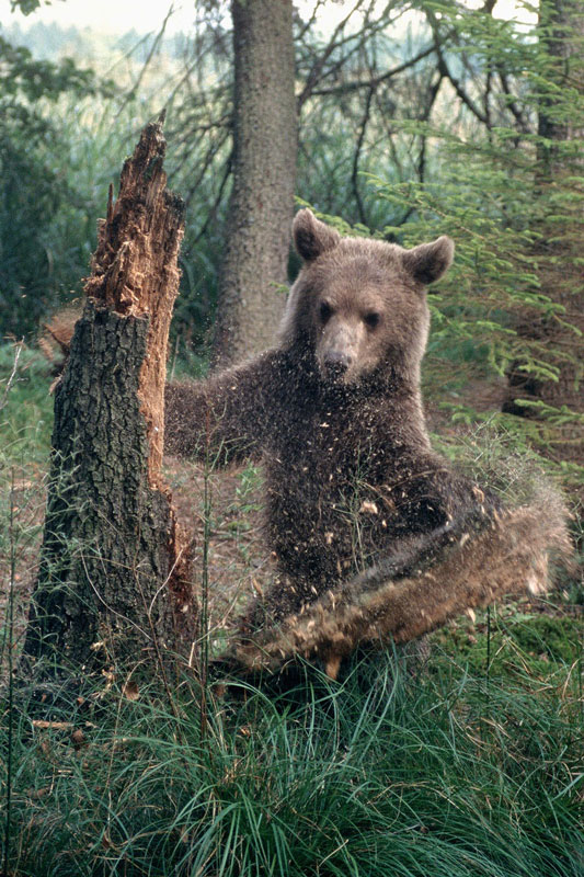 - kategorie Zvířata v lese: Medvídě rozlamující pařez (autor Antonín Říha)