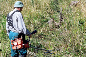 Ani v letních vedrech se nezastavily práce v lese. Probíhala jedna z nejdůležitějších činností při pěstování nového lesa – ochrana mladých lesních porostů proti buřeni.