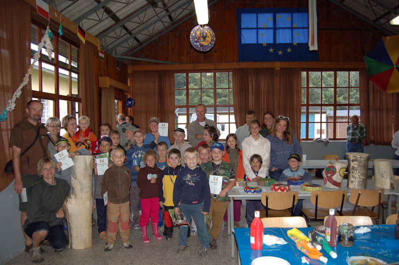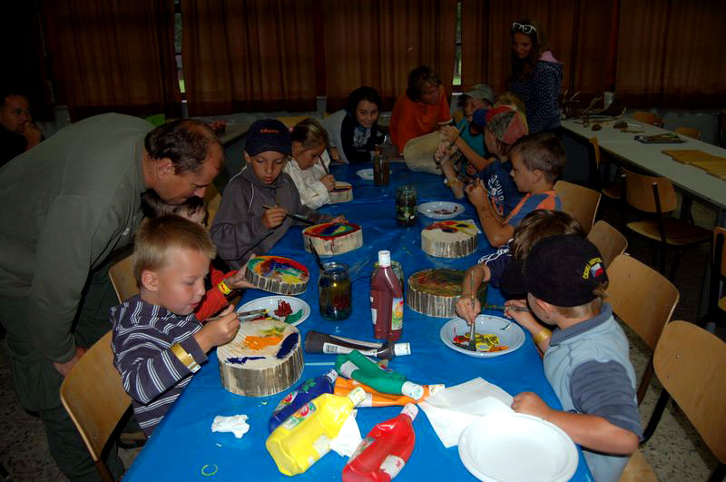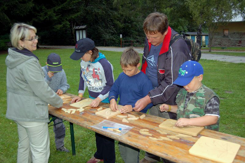 Děti a jejich rodiče byli pozváni do Sokolího hnízda poblíž Nových Hradů. V lokalitě pro ně byly připraveny malé lesní „hrátky“. Soutěžilo se v poznávání zvuků lesa, čichovém a hmatovém poznávání přírodnin. Byly připraveny ukázky paroží a jiných, v přírodě se vyskytujících, zajímavostí ke zkoumání nejen zrakem. Děti dále pomocí dlát a barev vytvářely vlastní totem. Program sice narušil déšť, ale díky ochotě správce Sokolího hnízda proběhlo vše bez problémů.