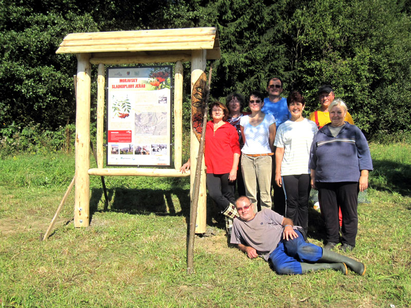 O výsadbu je potřeba se starat. Proto se 7. září sešli dobrovolníci u kostela v Ostružné, aby připravili vysazené stromky na zimu. Vysekali přerostlou trávu kolem nich, opravili oplocenky a úvazky a mj. byl také konečně osazen informační panel o jeřábu sladkoplodém u kapličky při silnici do Petříkova. Vzniklo zde místo odpočinku a poučení, protože k panelu přibyly i dvě lavice, které zhotovil sponzorsky místostarosta Ostružné a současně revírník LS Hanušovice Roman Roušal. Jemu i všem zúčastněným brigádníkům je třeba touto cestou poděkovat.