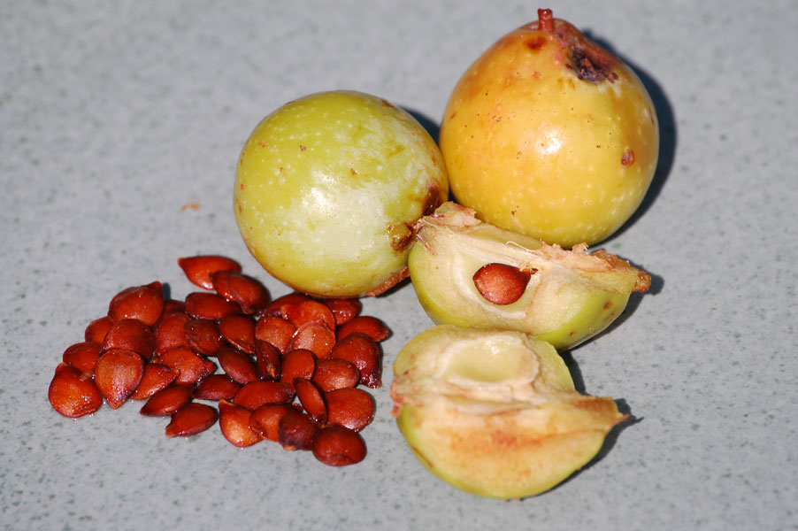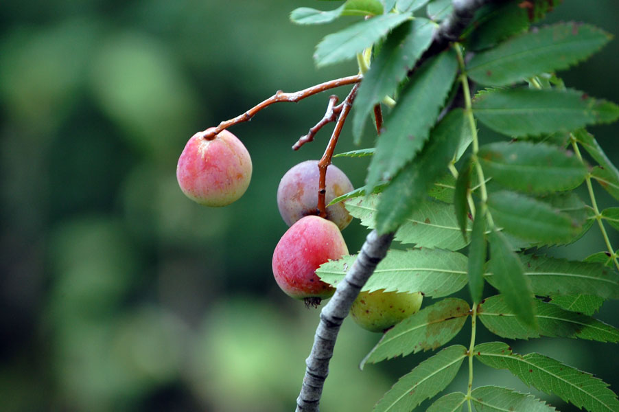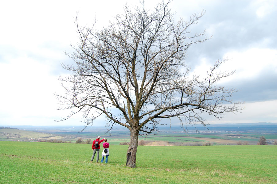 Popis fotografií shora dolů: 1. Plod oskeruše ukrývá vevnitř obvykle 1-2 hnědá semena, foto autor; 2. Oskeruše rostoucí v polích nedaleko Tvarožné Lhoty, foto autor; 3. Poslední plody oskeruše, ostatní plody již opadly, foto autor