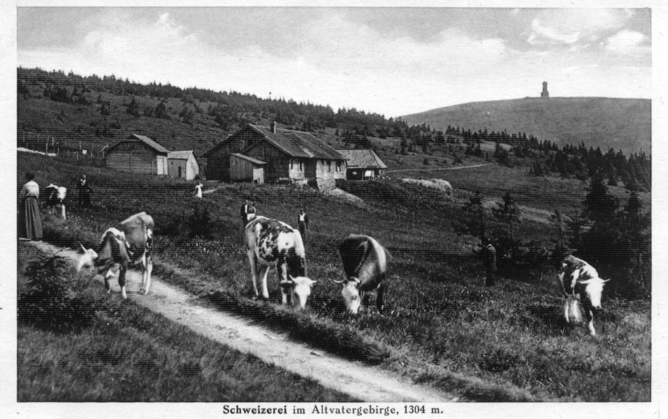 Historie využívání jesenických horských luk je velmi dlouhá, s pastvou dobytka a sklízením sena se v nejvyšších polohách Jeseníků začalo již na přelomu 17. a 18. století. Louky u Švýcárny byly k pastvě vhodné, protože byly dobře přístupné z Česnekového dolu a nacházel se zde bohatý zdroj vody. Už na mapě Losinského panství z roku 1736 je pod Malým Dědem na místě dnešní Švýcárny vyznačen tzv. Knoblochhaus (Česnekový dům ), který v té době sloužil jako obydlí pro pastevce. V roce 1802 kupují Losinské panství od Žerotínů Lichtensteinové, kteří se rozhodli zvýšit výnosy z horských luk tím, že zde začali používat stejné metody jako v alpách. Budují zde nové salaše, a tak byla na místě tehdy již opuštěného