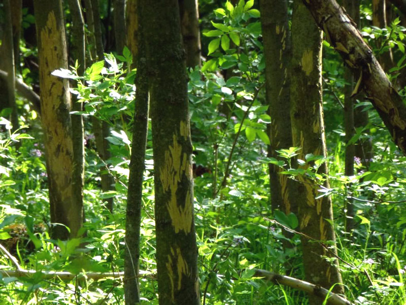 Loupání vzniká v letním období nakousnutím a odtržením kůry z kmene nebo kořenového náběhu i s lýkem.