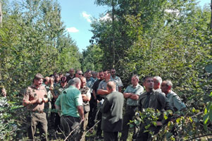 Po obědě v prostorách zámeckého sálu pokračovala odpolední část programu exkurzí do lesních porostů s výsadbami třešně v lokalitě Rumunská bažantnice. Přímo v jednom z porostů probíhala praktická ukázka vyvětvování třešně a po přejezdu autobusem na lokalitu Vranovický hájek si mohli účastníci prohlédnout porost ve věku 11- ti let, nejrozsáhlejší výsadbu třešně v oblasti Lesního závodu Židlochovice. Na výklad k vyvětvování navázala bohatá diskuze účastníků exkurze s přednášejícími a následoval návrat zpět do Židlochovic.