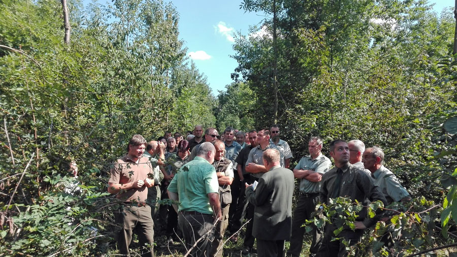 Po obědě v prostorách zámeckého sálu pokračovala odpolední část programu exkurzí do lesních porostů s výsadbami třešně v lokalitě Rumunská bažantnice. Přímo v jednom z porostů probíhala praktická ukázka vyvětvování třešně a po přejezdu autobusem na lokalitu Vranovický hájek si mohli účastníci prohlédnout porost ve věku 11- ti let, nejrozsáhlejší výsadbu třešně v oblasti Lesního závodu Židlochovice. Na výklad k vyvětvování navázala bohatá diskuze účastníků exkurze s přednášejícími a následoval návrat zpět do Židlochovic.