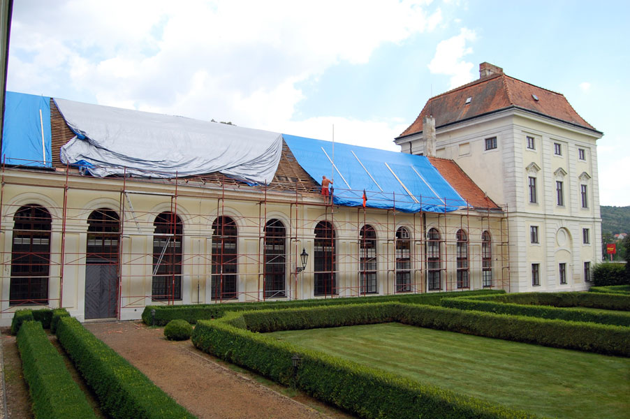 Oprava střechy zámku v Židlochovicích