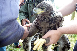 Orel mořský zde na revíru hnízdí již několik let. Letošní rok si však musel postavit hnízdo o kousek dál, než bylo jeho původní hnízdiště, protože byl při nasedání na hnízdo vyrušen prací v soukromých lesích. Kroužkování probíhá tak, že do koruny stromu vyleze zkušený stromolezec se speciální lezeckou výbavou. Odchytí mláďata na hnízdě a dá je do pytle, který pošle dolů. Na zemi ornitolologové mláďata okroužkují a pošlou je zpátky do hnízda.