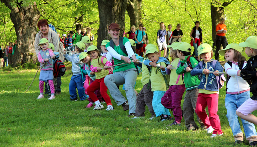 Zaměstnanci Lesů města Dvůr Králové předvedli lesní techniku, nechybělo porovnání lidské síly se sílou koňskou. Kmen dubu dlouho odolával, podařilo se ho popotáhnout po spojení sil dětí z MŠ a ZŠ obce Vítězná. Lesnické školství a zájmovou činnost přiblížili žáci České lesnické akademie Trutnov. Trubači fanfárami vítali přijíždějící účastníky, sokolníci poutavě vyprávěli o tomto starém způsobu lovu a vábiči předvedli nejen jelení říji, ale i zvuky jiných zvířat. Pracovníci KRNAPu oživili model Krkonoš. Skotačení na lesním hřišti doplnili akčními hrami pracovníci ze ZOO Dvůr Králové. Zaměstnanci Domu dětí a mládeže Jednička zaplnili dřevěný altán tvořivými dílnami, zapojeny byly všechny smysly.