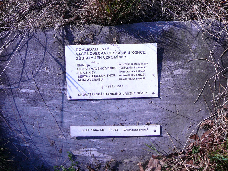 Tak, jak se postupně naplňuje čas života nám lidem, naplní se jednou i našemu věrnému příteli a kamarádovi. S krásnou myšlenkou přišli někdy v polovině sedmdesátých let minulého století naši jablunkovští lesníci. V nádherném a tichém zákoutí hory Ostrý zřídili pro navždy odešlé služební psí kamarády jakýsi psí hřbitov. Zdejší palouček zdobí několik jednoduchých kamenných obelisků s vytesaným jménem psa a datem jeho odchodu do věčných lovišť. Pokaždé, když toto místo navštívím, cítím jakési dojetí. No řekněte sami, nedojalo by vás také, když čtete: „za práci a věrnost“?