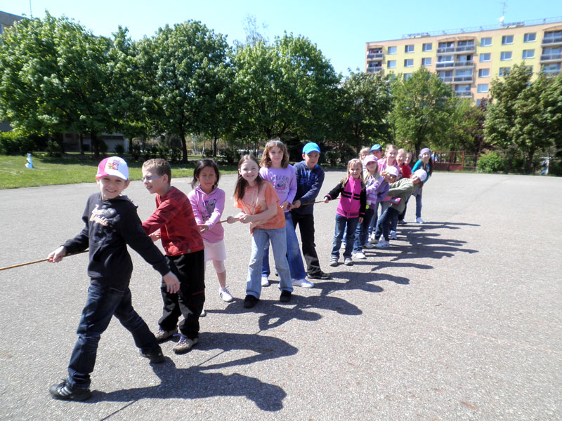 Po dvou znalostních a naučných stanovištích čekaly žáky disciplíny, kde museli ukázat svoji sílu jako mravenečci při stavbě mravenišť. Velkou odměnou bylo pro žáky též přetahování lanem, hod na medvěda a skoky v pytlích okolo zajíce a lišky. Užili si u toho spoustu legrace.