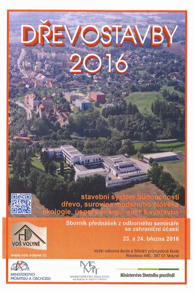 Sborník příspěvků z 20. odborného semináře se zahraniční účastí (Volyně, 23. – 24. 3. 2016), který pořádala Vyšší odborná škola a Střední průmyslová škola, Volyně, za podpory Ministerstva průmyslu a obchodu, Ministerstva školství, mládeže a tělovýchovy a Ministerstva životního prostředí. Seminář informoval odbornou veřejnost o trendech použití dřeva ve stavebnictví a seznámil účastníky s některými technickými a legislativními problémy při řešení dřevostaveb a s konstrukčními systémy, které se používají v České republice i v zahraničí. Seminář byl určen architektům, projekčním, investorským a realizačním firmám, které se zabývají problematikou dřevostaveb, ekologie a úsporami energií, řídícím pracovníkům resortu stavebnictví a dřevozpracujícího průmyslu, pedagogům odborných škol a široké odborné veřejnosti.