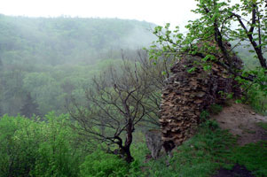 Lapikus byl postaven mezi lety 1365-1380 a byl pobořen vojsky Matyáše Korvína v letech 1468-1471. Pod Lapikusem stával pravděpodobně další mlýn, jehož zbytky se našly při zakládání dávno zrušené lesní školky. V údolí potoka za Lapikusem roste několik majestátných starých jilmů a údolí se maličko rozšiřuje k soutoku s řekou, kde je další říční brod na cestě do Plavče. Po překonání Jevišovky okolo Culpovského mlýna dojdete do Plavče, kde je opět možnost občerstvení a také zastávka autobusu.