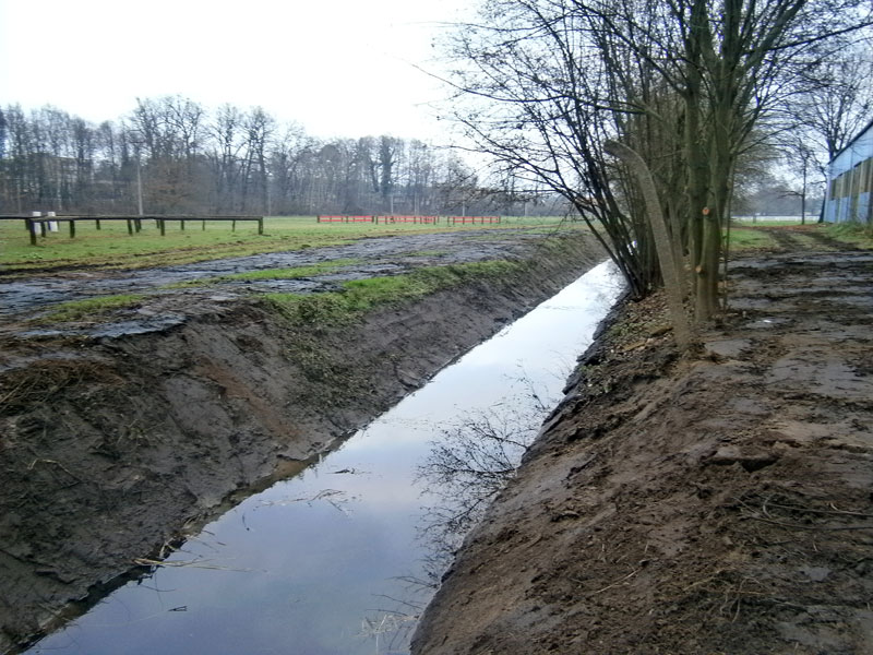 Rovinatá krajina celého území společně s dalšími okolnostmi přispívá k neustálému a pravidelnému zanášení sedimentem většiny koryt vodních toků a kanálů, tento stav podstatně zhoršuje odvodňovací funkce téměř všech toků po celém areálu hřebčína, a proto je zapotřebí neustálá komplexní údržba téměř všech vodních toků po celém areálu. S těmito pracemi souvisí péče o břehový porost, který je pro Kladruby velice specifický, jelikož se nacházíme na pozemcích národní kulturní památky a kulturní památky. Na březích vodních toků se nachází náletové porosty různého stáří a druhu, kromě toho se tam ve velké míře vyskytují také topoly staršího věku, řada topolů je přestárlých, dožilých a hlavně jsou v havarijním stavu a potřebují odstranit. Následně po odstranění dřevin je zapotřebí provést výsadbu původních dřevinných kultur, které jsou od minulosti pro hřebčín specifická.