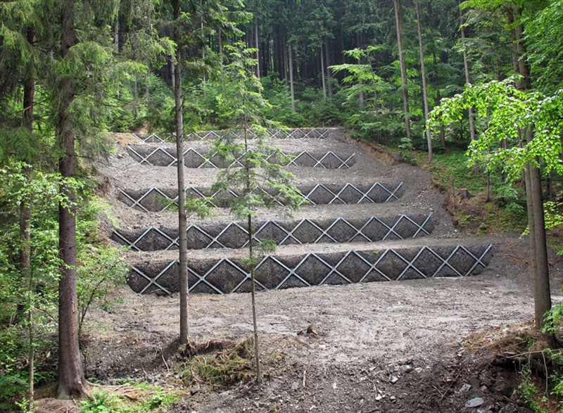 Tato stavba se právě dokončuje na území Lesní správy Jablunkov. Je zajímavá tím, že se na ni poprvé v České republice použily prvky systému ERDOX, které byly vyvinuty pro sanaci strží a protilavinovou ochranu v Itálii.
