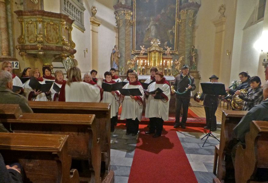 Přesně v půl sedmé večer patnáctého listopadu zazněly z kůru kostela slavnostní fanfáry vyzývající všechny přítomné k účasti na troubené a zpívané Svatohubertské mši. Po odeznění jejich tónů vstoupil do kostela průvod myslivců a četných hostů, v jehož čele byl nesen obraz sv. Huberta od akademického malíře V. Nasvětila, za ním vstoupil do kostela místní kněz a po něm byla nesena trofej jelena, doprovázená početným zástupem místních myslivců a pozvaných hostů. Vlastní mši svatou celebroval P. Pavel Schwarz za doprovodu Souboru loveckých trubačů LČR, Lesní správy Jeseník a Pěveckého sboru při obci Bělá pod Pradědem. Celebrující kněz pojal své kázání nejen ve smyslu oslavy sv. Huberta, ale také v duchu vyslovení uznání všem lesníkům a myslivcům, kteří o les a zvěř a o přírodu v celku svými zásahy a umem pečují a neustále ji zušlechťují. Za tuto práci všem upřímně poděkoval. Člen Řádu svatého Huberta Josef Bartušek přednesl legendu o Hubertově životě a jeho následující konverzi (opuštění světského života a uchylování se k životu duchovnímu).