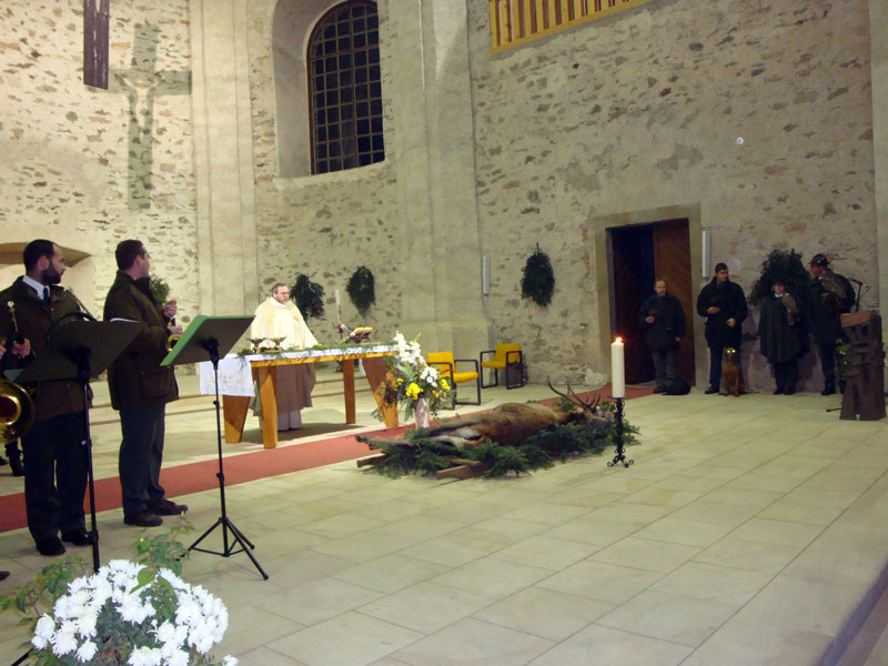 Návštěvníci měli možnost prožít Svatohubertskou troubenou mši B dur od JUDr. Petra Vacka a Josefa Selementa v podání trubačského souboru MARKAZÍNI a rychnovských pěveckých sborů CARMÍNA a CARMÍNA ALTA, kterou sloužil Mons. Josef Suchár. Při zaznění prvních tónů vstoupila do kostela „Hubertova družina“ v čele s uloveným jelenem, za kterým následovali psovodi se psy a sokolníci s dravci. Na začátku bohoslužby přečetl lesní správce Ing. Jiří Mička příběh o svatém Hubertovi a poté následoval nejsilnější moment celé mše, kterým byl okamžik, kdy byly předčítány jména zesnulých lesníků, kteří zasvětili svůj život lesům Orlických hor.