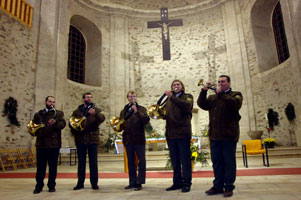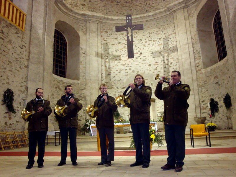 Po skončení samotné mše následovalo vystoupení trubačů, kteří svou ukázkou skladeb a signálů od Prof. A Dyka seznámili posluchače s průběhem tradičního českého honu.