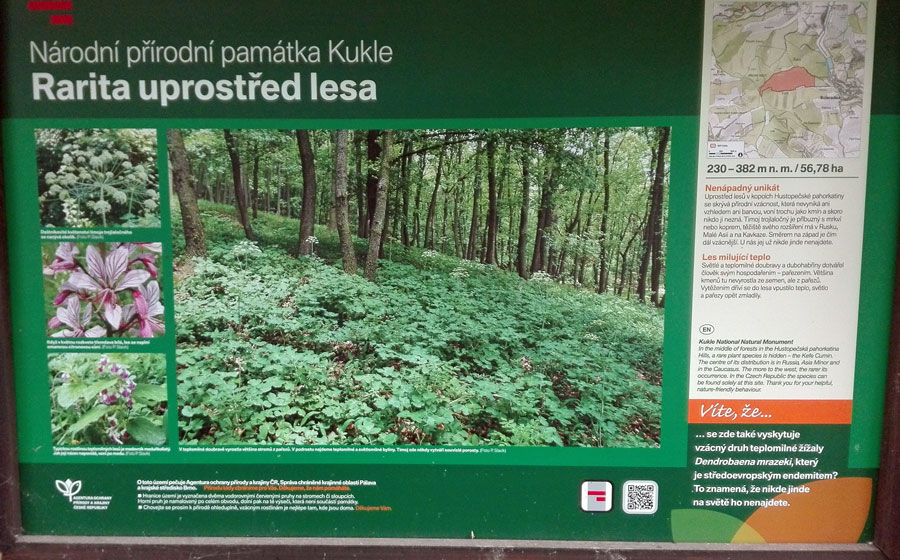 Timoj trojlaločný (Laser trilobium) totiž roste pouze v lese v Národní přírodní památce Kukle. Jde tedy na území České republiky o velmi vzácný druh řazený do kategorie kriticky ohrožených rostlin. Na první pohled se jedná o nenápadnou rostlinu až jeden metr vysokou, která je příbuzná třeba s naší mrkví či koprem. Květenstvím je okolík bílých kvítků. List se podobá listům orlíčku (ve starší literatuře se dokonce nazýval timojem orlíčkolistým). Těžiště výskytu tohoto druhu je v Rusku, na Kavkaze a v Malé Asii. Směrem na západ je čím dál vzácnější. U nás jej nikde jinde než v lese mezi Kurdějovem, Diváky a Boleradicemi na jihu Moravy nenajdeme. Zdejší teplá světlomilná doubrava mu vyhovuje, potřebuje totiž k růstu dostatek světla, ale zase ne příliš. Druhu se zde v posledních letech daří dobře a jeho populace není ohrožena. Prosvětlováním porostu těžbou jsou mu zde vytvářeny vhodné podmínky k růstu.