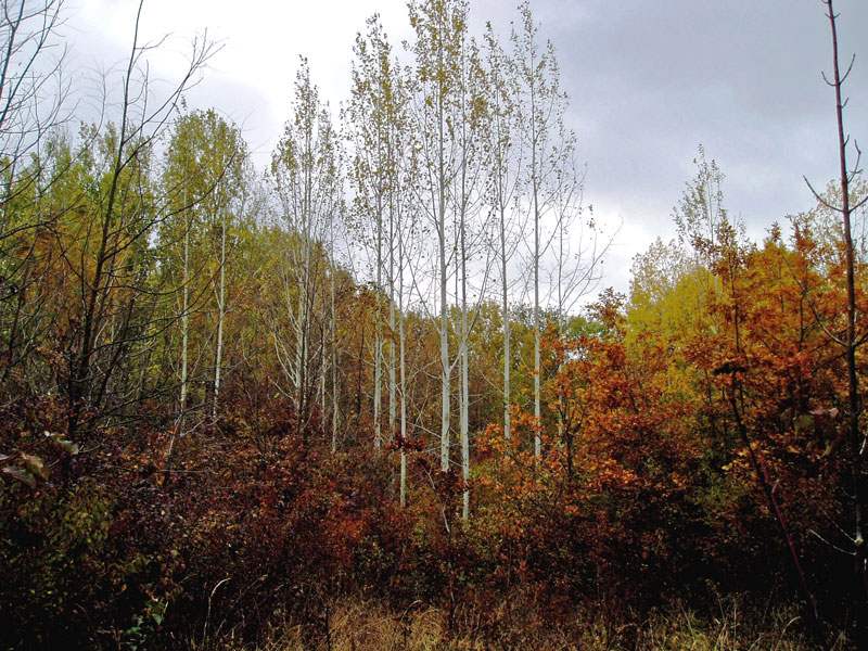Pokud někdy pojedete do Dyjákovic v okrese Znojmo a zamíříte na sever od této obce do lesa zvaného Šiml, dostanete se do míst, kde dominují topoly. Rostou zde klony topolů euroamericana. Těmto vyšlechtěným stromům však směle konkuruje topol šedý (Populus x canescens (Aiton) Sm.), který je přirozeným křížencem topolu osiky a topolu bílého (linda). Vznikl zde kříženec rychlého růstu, který má válcovitý rovný kmen a jemné větvení. Na rozdíl od vysazených klonů se zde topol šedý za jistých podmínek masivně přirozeně zmlazuje.