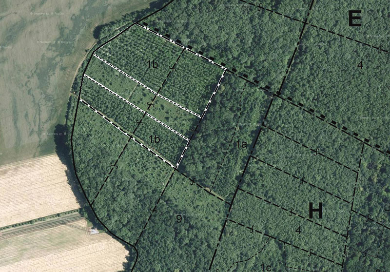 Na jaře 2005 byla přirozená obnova původních dřevin, se kterými se počítalo jako se dřevinami výchovnými (mimo akát) doplněna třešňovými semenáčky o výšce 40 až 50 cm v přibližném sponu 5 x 4 m. Celkem počet vysazených semenáčků činil 950 kusů na obě plochy. Ochrana proti zvěři byla zajištěna pomocí individuálních ochran tubusů speciál o výšce 120 cm. Jako opora byly použity roxory. Použití tubusů má výhodu i v tom, že jsou v porostu dobře vidět a v prvních letech po výsadbě značně usnadňují nalezení třešní v porostu při vyvětvování. Vysazené třešně se velice dobře ujaly a odrůstaly. V následujících letech bylo na těchto plochách provedeno následující: