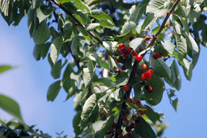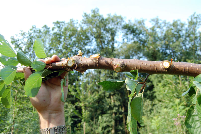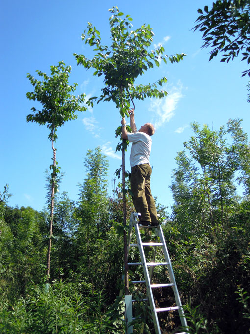 Řezy po odstranění letorostů. Vyvětvování lze provádět ohnutím terminálu, v následujících letech pomocí žebříku. Foto z roku 2009. |