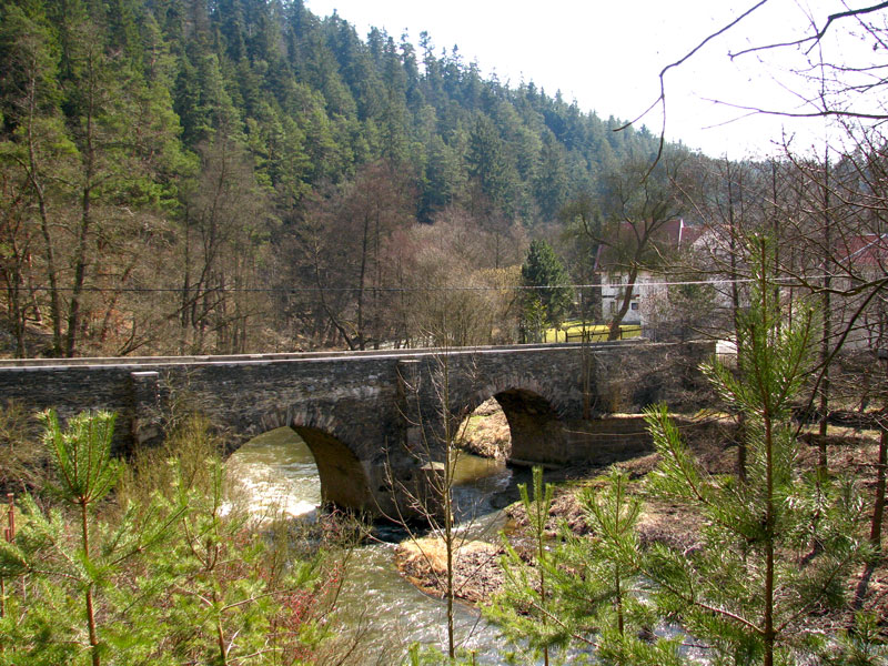 Dalším krásným přírodním úkazem síly vody je řeka Střela meandrující a zařezávající se do údolí. Obtéká například skalní ostroh, na kterém se tyčí středověké městečko Rabštejn nad Střelou, a přestože nemá dostatek vody pro oblíbené sjíždění vodáky,(jen v jarním období při vypouštění Žlutické přehrady je řeka sjízdná) tak voda zde teče velmi rychle, jak i v tomto případě název řeky napovídá. A právě zde v Rabštejně se voda a kámen setkávají. Krásný kamenný obloukový středověký most, údajně třetí nejstarší v Čechách, postavený králem a císařem Karlem IV., ve spodní části patrně gotický, ladně protíná řeku. Dříve most zdobila socha sv. Jana Nepomuckého, červený dřevěný kříž a chrliče vody po stranách mostu. U mostu na strmém skalním svahu se odlamují kusy šedavých břidlic, které zdobí střechy nejednoho domu v Rabštejně a dokonce i střecha chrámu sv. Víta v Praze a střecha Karlštejna má původ v místní břidlici. Těžba se v roce 1972 ukončila pro téměř celé vyčerpání lomů. Dále by se mohla narušit statika místních domů na hradním vrchu a krom toho ochranný režim přírodní rezervace Střela, vyhlášené roku 1976 již nepřipouštěl další těžbu. Tak tu stříbrnošedé placaté destičky krášlí zídky zahrad, zbytky obranných městských hradeb, tvoří opěrné zídky v říčních březích a lákají kolemjdoucí k házení žabek do vody či ke křesání libých hřejivých zvuků anebo pouze k vzpomínce dávných časů, kdy prapředci mohli na takovéto destičky psát.