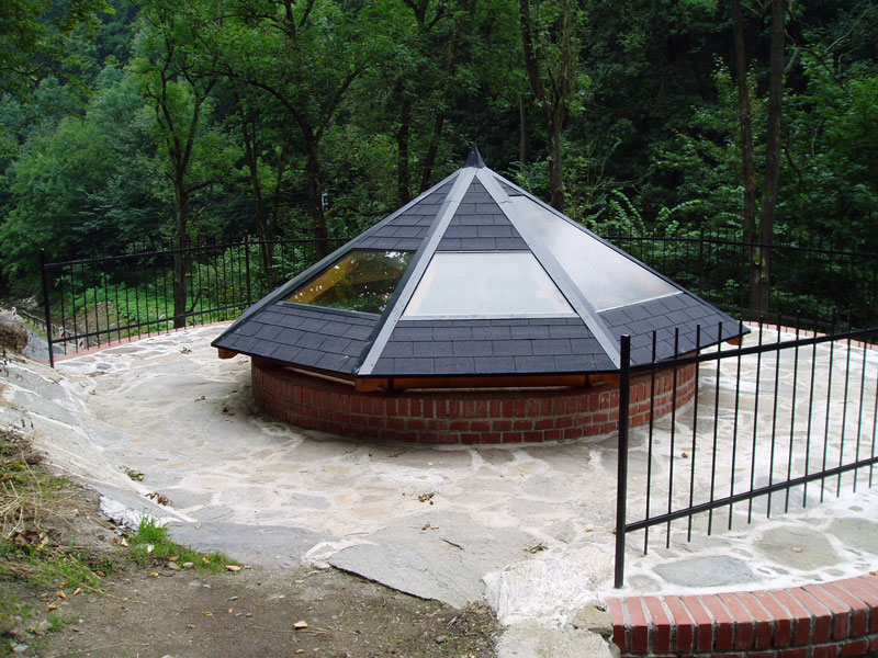 - přístřešek na sv. Trojici – ohniště (zakopaný kovový disk) – odcizen 2010, venkovní krb s kovovým roštem – odcizen v roce 2012