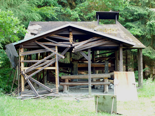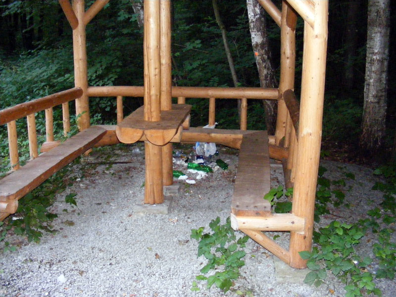 - když je „návštěvníkům“ lesa v altánu zima, klidně si udělají oheň z části altánku, nebo vybavení (foto 11)