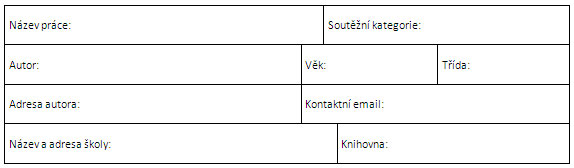 Výtvarné práce (kresby, malby, grafika, leporela apod., Pozor! trojrozměrné práce nebudou přijaty do soutěže! ) na stanovené téma soutěžící předají do 22. 2. 2013 v zapojených knihovnách nebo je zašlou na jejich adresu. Výtvarné práce je nutno opatřit na zadní straně štítkem s údaji (kontroluje a případně doplní zástupce zapojené knihovny): jméno autora, věk, třída, soutěžní kategorie, název a adresa školy, název práce, adresa a emailový kontakt na autora výtvarné práce, zapojená knihovna.