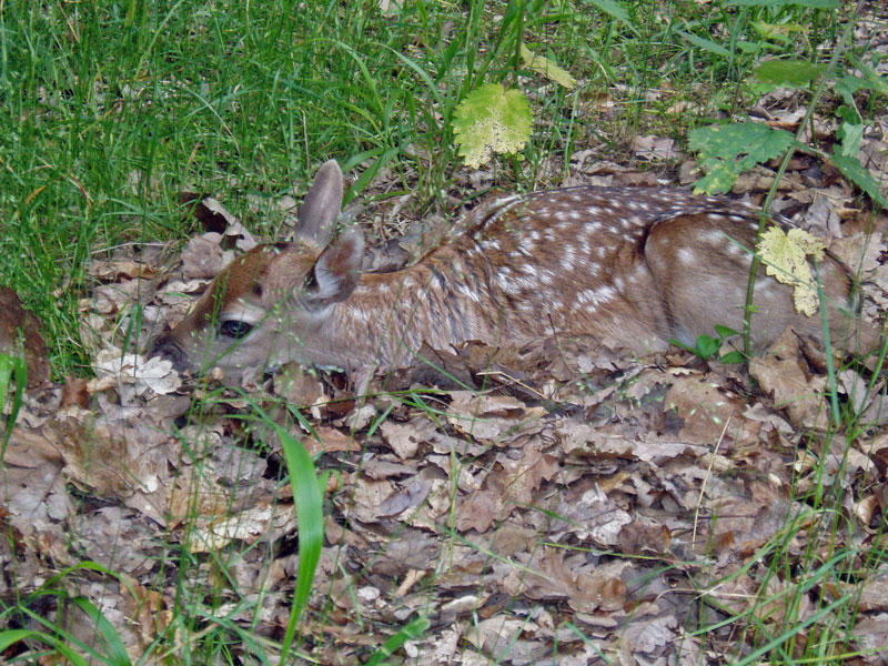 Obrázek k článku: Odložené mládě Daňka skvrnitého.