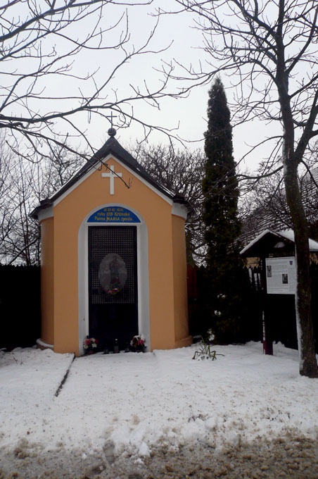 Do roku 1875 stával na místě zjevení sloup s vyobrazením Panny Marie. V roce 1875 nechal majitel křtinského zámku hrabě z Bubna-Litic v prostoru nalezení této zázračné sochy, postavit kapličku. Toto místo je pravidelnou zastávkou procesí, která do Křtin přicházejí již po osm století. Zastavují se zde jak jednotliví poutníci, aby v modlitbě děkovali, prosili a nacházeli naději, tak i turisté a pohřební průvody, které doprovázejí na nedaleký místní hřbitov své zemřelé.