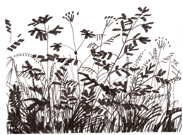 Poslouchám, vdechuji zhluboka a dívám se. Těch barev a tvarů v nekonečném souznění. Podívám se blíž, ještě blíž, kolik je života na každé větvičce, stéblu, jehličí. Podívejme se, maličký brouček, jde si svou cestičkou mezi stébly. Jak to, že se nebojí, jak to že se neztratí? Ví docela jistě, kam jde.