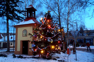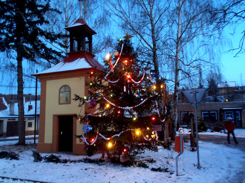 Na závěr loňského roku 2012 se tak stalo první prosincovou sobotu. Pro tuto slavnostní příležitost byl z našeho revíru vybrán a přivezen statný smrček, který odvážní dobrovolníci postavili a bezpečně zpevnili. Jeho zdobení zajistily přinesenými a často vlastnoručně vyrobenými ozdobami především děti.
