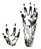 zima je pro všechnu lesní zvěř z hlediska výživy nejtěžším obdobím. Kvůli nedostatku potravy je zvěř v zimních měsících přikrmována a do krmelců a zásypů jsou myslivci předkládány různé druhy potravy. I k našemu krmelci přišlo několik zvířat. Dokážete k jednotlivým stopám napsat, o jaké zvíře se jedná? Na druhý řádek u stop v soutěžním dotazníku napište, co dobrého k snědku byste pro jednotlivá zvířata u krmelce připravili.