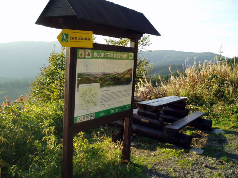 V roce 2008 došlo k celkové rekonstrukci (výměny textů, přesuny panelů). Návštěvníci se dozvědí, co zajímavého tu žije a roste, čím jsou vzácné lesy v okolí, jak se postupně mění krajina, kde se ukrývali partyzáni nebo kde podle pověsti stavěl čert. Stezka vede přes NPR Kněhyně – Čertův mlýn, kde jsou na vrcholu a přilehlých svazích Kněhyně a masivu Čertova mlýna dochovány lesních porosty vysokohorského typu. Na cestě narazíte i na Přírodní rezervaci Klíny, ukázku přirozených jedlobukových lesních porostů pralesovitého charakteru. Území je rozbrázděno až 8 metrů hlubokými zářezy potoků.