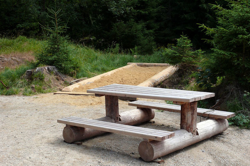 U 4 cedulí je vždy lavička,na dvou místech jsou nainstalovány odpadkové koše, součástí NS je i 1 altán na ostrůvku rybníka, písková část vede podél plavebního kanálu Dlouhá stoka z 16.století, vodoteče přemosťuje 6 dřevěných mostků. Doskočiště.